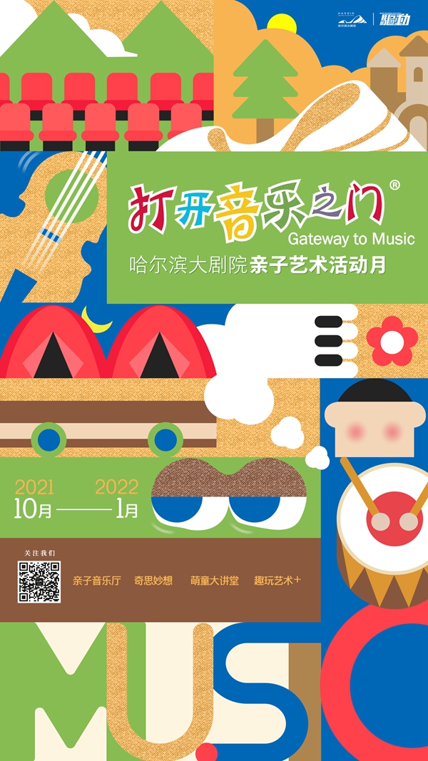 本次“打開音樂之門”藝術活動月精選如夢令——何怡中國詩詞琴歌音樂會、宮崎駿遇到久石讓——BABY樂團視聽音樂會、親子音樂會《溫暖的抱抱》、光影里的音符——影視交響音樂會、雪域圣音——陀樂樂團非遺世界音樂會、親子音樂會《童話總動員》、繪本兒童劇《猜猜我有多愛你》、《瞳年音樂蛋糕昉》、木蘭原創(chuàng)兒童劇《彼得·潘》、《村上春樹的爵士歌單——“磁”爵士樂隊講解型音樂會》等優(yōu)質演出項目,以超值的購票套餐引領觀眾走進藝術殿堂。此外,觀眾還可以通過哈爾濱大劇院公眾號報名參加“小小文創(chuàng)設計師”、“劇院奇妙夜”等藝術活動,讓多彩的藝術之光照亮少年兒童的成長之路。