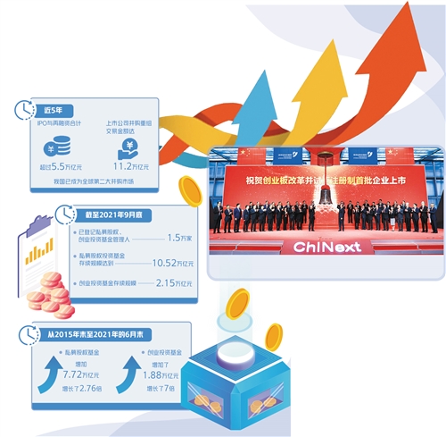 值得關(guān)注的是,私募股權(quán)和創(chuàng)投基金已成為直接融資的重要力量,在為投資者創(chuàng)造財(cái)富回報(bào)的同時(shí),也對(duì)直接融資和實(shí)體經(jīng)濟(jì)具有重要的促進(jìn)作用。數(shù)據(jù)顯示,截至2021年9月底,已登記私募股權(quán)、創(chuàng)業(yè)投資基金管理人1.5萬家,私募股權(quán)投資基金存續(xù)規(guī)模達(dá)到10.52萬億元,創(chuàng)業(yè)投資基金存續(xù)規(guī)模2.15萬億元。從2015年末至2021年的6月末,私募股權(quán)基金增加7.72萬億元,增長(zhǎng)了2.76倍。創(chuàng)業(yè)投資基金增加了1.88萬億元,增長(zhǎng)了7倍。