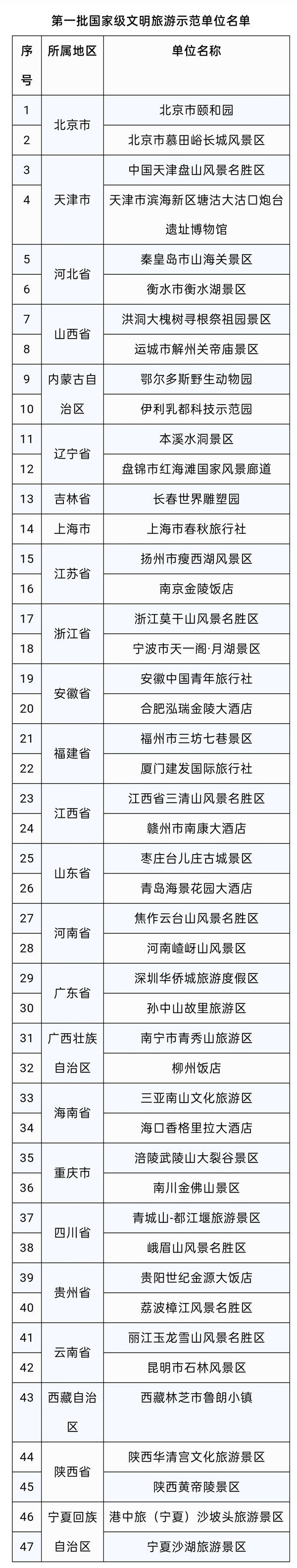 新華網(wǎng)訊(記者 余俊杰)記者18日從文化和旅游部獲悉,經(jīng)自愿申報、省級文化和旅游行政部門審查推薦、全國旅游標準化技術(shù)委員會最終評定后,認定北京市頤和園等47家單位達到國家級文明旅游示范單位標準。