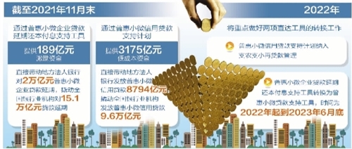 數(shù)據(jù)顯示,截至2021年11月末,人民銀行通過普惠小微企業(yè)貸款延期還本付息支持工具,提供了189億元激勵資金,直接帶動地方法人銀行對2萬億元普惠小微企業(yè)貸款延期,撬動全國銀行業(yè)機構對15.1萬億元貸款延期。人民銀行通過普惠小微信用貸款支持計劃提供3175億元低成本資金,直接帶動地方法人銀行發(fā)放普惠小微信用貸款8794億元,撬動全國銀行業(yè)機構發(fā)放普惠小微信用貸款9.6萬億元,取得了明顯的效果。