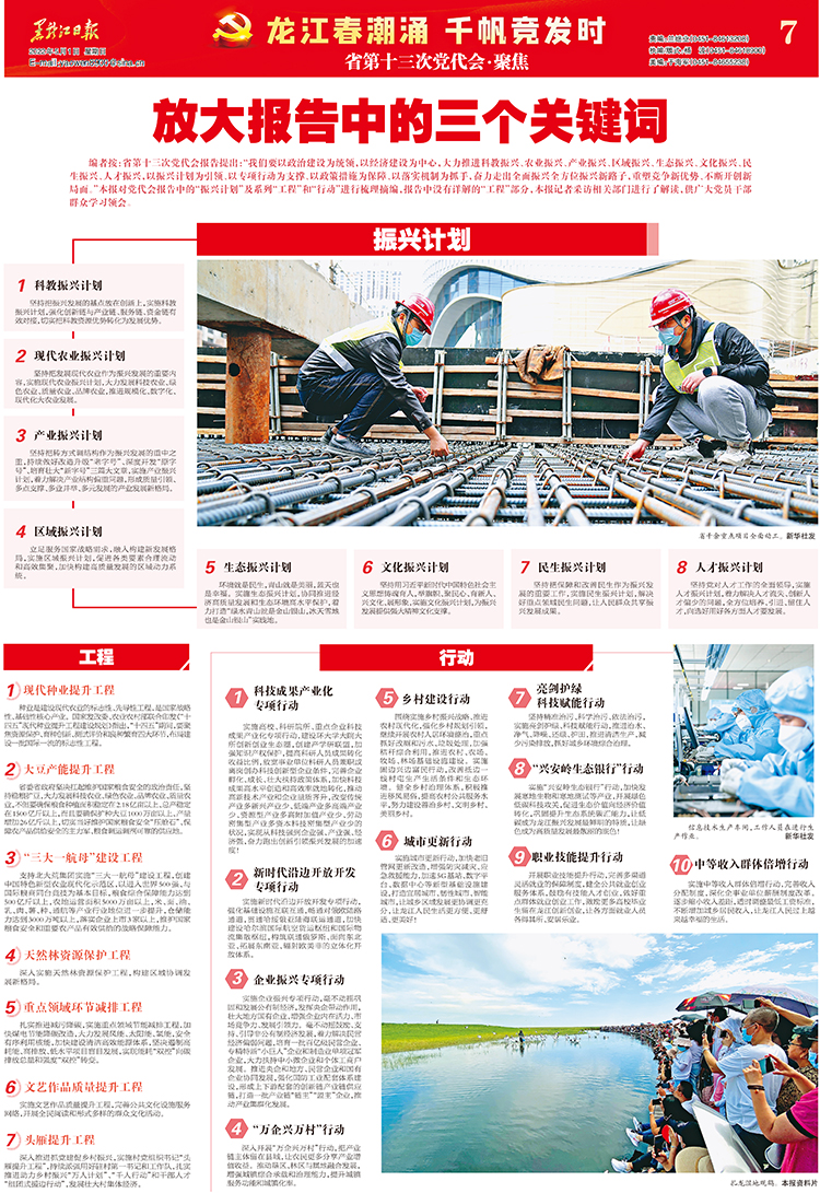 編者按:省第十三次黨代會報告提出:“我們要以政治建設為統(tǒng)領,以經(jīng)濟建設為中心,大力推進科教振興、農(nóng)業(yè)振興、產(chǎn)業(yè)振興、區(qū)域振興、生態(tài)振興、文化振興、民生振興、人才振興,以振興計劃為引領、以專項行動為支撐、以政策措施為保障、以落實機制為抓手,奮力走出全面振興全方位振興新路子,重塑競爭新優(yōu)勢、不斷開創(chuàng)新局面?!北緢髮h代會報告中的“振興計劃”及系列“工程”和“行動”進行梳理摘編,報告中沒有詳解的“工程”部分,本報記者采訪相關部門進行了解讀,供廣大黨員干部群眾學習領會。