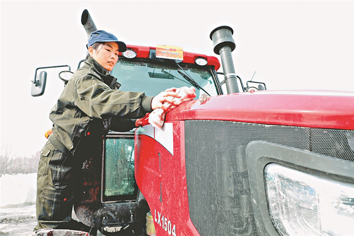 在不斷的實踐練習中,杜春燕不僅成長為全能農機手,還成為先進農機技術的推廣員,她把自己所掌握的技能搬到了田間課堂,隔三岔五地向農場里的農戶介紹新機械的工作原理。