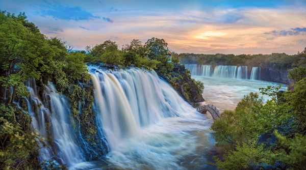 兩條毫無污染而清澈的高山河流——金溪谷和銀溪谷川流不息,多處跌水形成了罕見且壯觀的九疊泉瀑布群,其秀麗的自然風(fēng)光如人間仙境一般,素有“北國(guó)小九寨”之美稱。