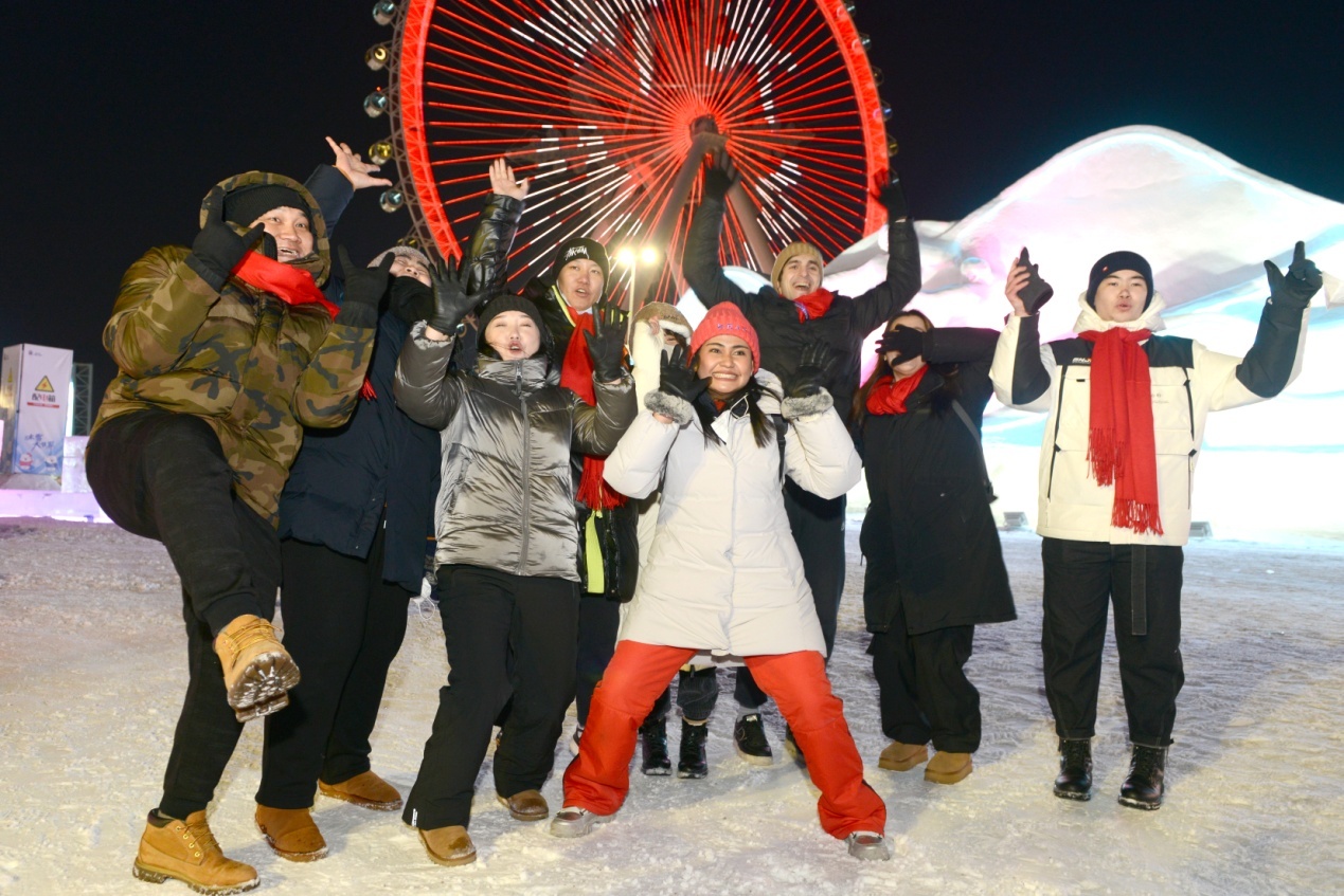 當(dāng)天上午,在雪博會(huì),來(lái)自黑龍江大學(xué)的各國(guó)留學(xué)生代表與中國(guó)青少年結(jié)對(duì)互動(dòng),互贈(zèng)新春禮物,表達(dá)對(duì)即將迎來(lái)的兔年美好祝福。中外青少年小手拉大手,共游太陽(yáng)島雪博會(huì),鯉魚(yú)躍龍門、圓夢(mèng)啟程、雪冠博覽等雪雕雪景讓大家流連忘返。世界各國(guó)青少年一起雕刻“宇航員”雪雕,送上春聯(lián)祝福語(yǔ),體驗(yàn)了中國(guó)傳統(tǒng)文化和濃濃的年味,表達(dá)了對(duì)世界文化共融的美好祝愿。