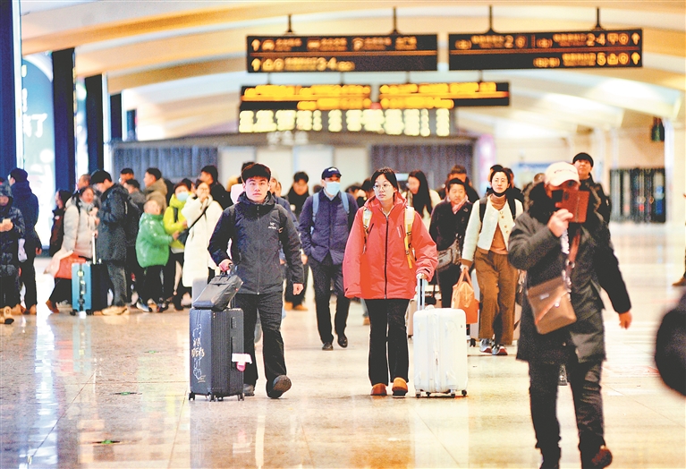 26日,哈爾濱火車站出站口,許多大學(xué)生推著行李箱,走出車站,返回學(xué)校,開啟新學(xué)期的學(xué)習(xí)生活。