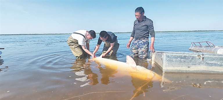 在黑龍江省水生動(dòng)物資源養(yǎng)護(hù)中心技術(shù)人員的精心救治與蘿北縣和遜克縣漁政部門的協(xié)同努力下,這兩尾達(dá)氏鰉完成救治后,被及時(shí)放歸黑龍江干流蘿北段、遜克段,重歸自然。