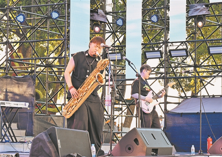 本報(bào)28日訊(記者李鵬舉)28日晚,第20屆世界薩克斯管大會系列演出在哈爾濱防洪紀(jì)念塔廣場舉行。當(dāng)晚,Uncle Bad樂隊(duì)Ska punk原創(chuàng)音樂作品匯報(bào)表演和沈陽音樂學(xué)院爵士大樂隊(duì)的專場音樂會,用靈動的旋律為哈爾濱夏夜注入活力,為市民和游客呈現(xiàn)了一場視聽盛宴。