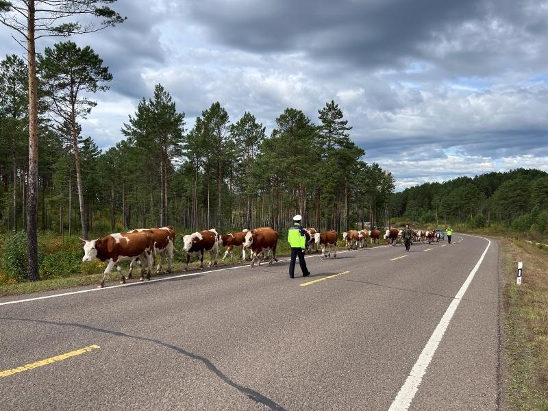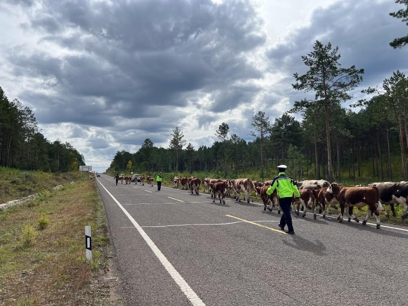 每次牲畜轉(zhuǎn)場(chǎng)大多由一名養(yǎng)殖戶(hù)照料,因牛群數(shù)量多、分散廣,養(yǎng)殖戶(hù)根本顧不過(guò)來(lái),部分牛時(shí)不時(shí)竄向路中央,過(guò)往車(chē)輛只能小心翼翼避讓?zhuān)煌ò踩[患重重。針對(duì)轉(zhuǎn)場(chǎng)路線(xiàn)長(zhǎng)、牲畜數(shù)量多、車(chē)輛與畜群混行等實(shí)際情況,呼瑪縣公安局交通管理大隊(duì)提前謀劃、精心部署。轉(zhuǎn)場(chǎng)當(dāng)日,天還未亮,民輔警們就已在集合點(diǎn)等候。他們與養(yǎng)殖戶(hù)一起檢查牛群狀態(tài)、整理物資,隨后便踏上了轉(zhuǎn)場(chǎng)之路。一路上,民輔警們分散在牛群周?chē)?,有的在前方引?dǎo),及時(shí)疏導(dǎo)交通,指揮過(guò)往車(chē)輛減速慢行,確保車(chē)輛與畜群有序通行;有的在后方壓陣,防止牛群掉隊(duì);有的在兩側(cè)警戒,用溫和的呼喊聲和手勢(shì)指揮牛群前進(jìn)方向。