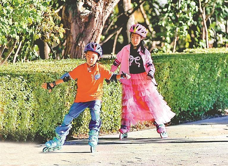 人工湖內(nèi),逐漸枯黃的蘆葦隨風(fēng)搖曳,幾株睡蓮的花朵漂浮在水面上,不時(shí)有野鴨、白骨頂雞從水中游過,游人們紛紛拿出手機(jī)拍下美麗瞬間。孩子們有的騎車,有的玩輪滑,有的在樹林間奔跑玩耍,歡笑聲此起彼伏。